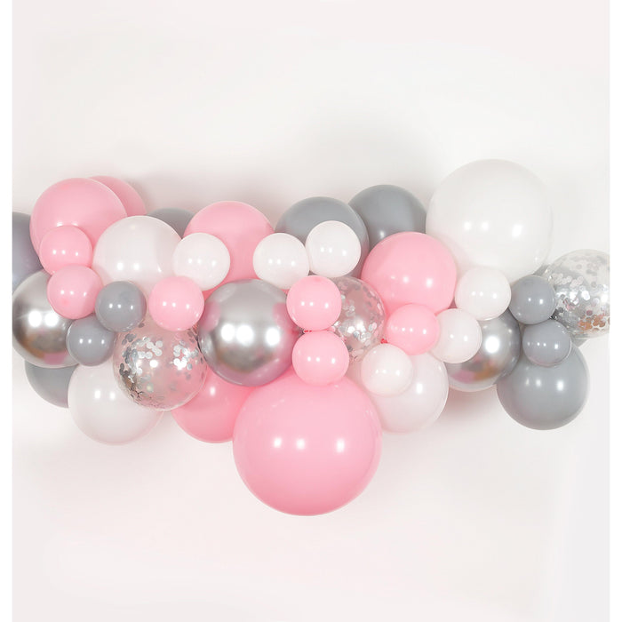 Bubblegum Pink, White, Gray and Silver Balloon Arch and Garland Kit (5, 10, 16 foot)