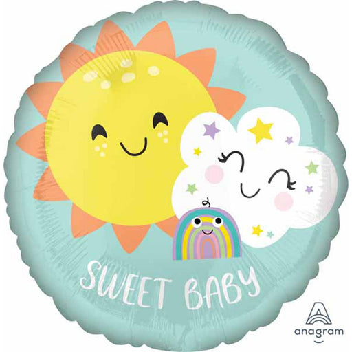 The Sweet Baby Rainbow 18" Rnd Hx S40 Pkg is the perfect gift for any new baby! This package includes: One 18" round balloon with a colorful rai...