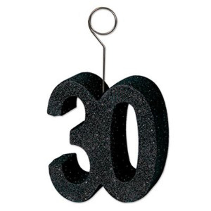 Black Glittered '30' Photo/Balloon Holder: Elegant Milestone Decoration (3/Pk)