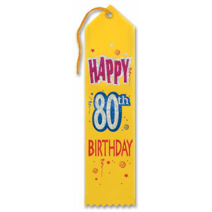 Happy "80th" Birthday Award Ribbon (18Cs/Pk)