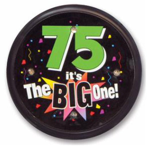 Celebrate the big milestone of turning 75 with our It's The Big One Flashing Button. Featuring vibrant colors and flashing lights, this fun accesso...