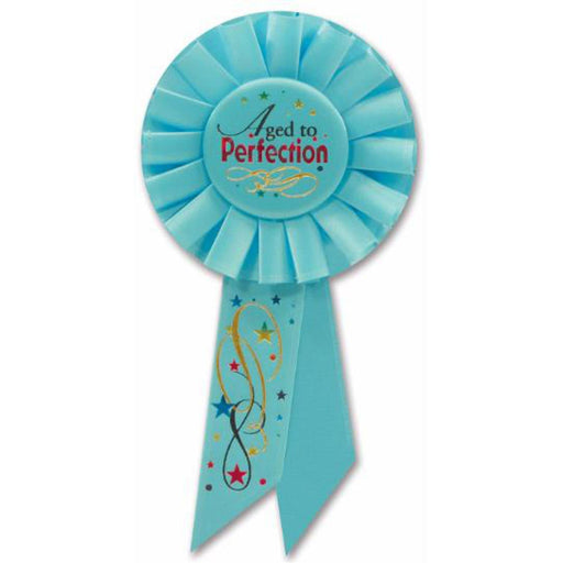 Elevate your celebration with our "Aged to Perfection" Rosette Award Ribbons, featuring an exquisite light blue badge. This rosette is a symbol ...