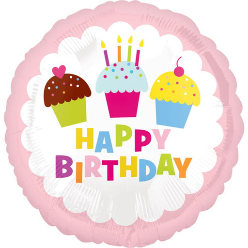 18" Happy Birthday Cupcake 2 Sided Balloon (10/Pk)