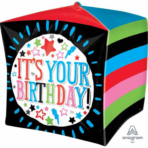 Vibrant Celebrations: 15" Cubez It's Your Birthday Sketchy Foil Balloon (3/Pk)
