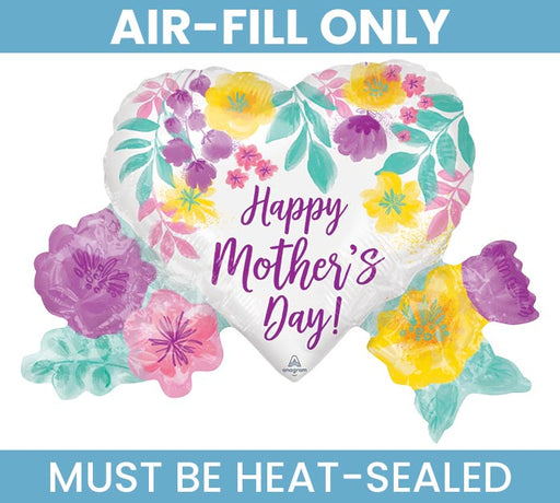 Celebrate Mom in style with our "Happy Mother's Day Painted Floral Heart 14" Foil Balloon." This elegant balloon features a beautiful ...