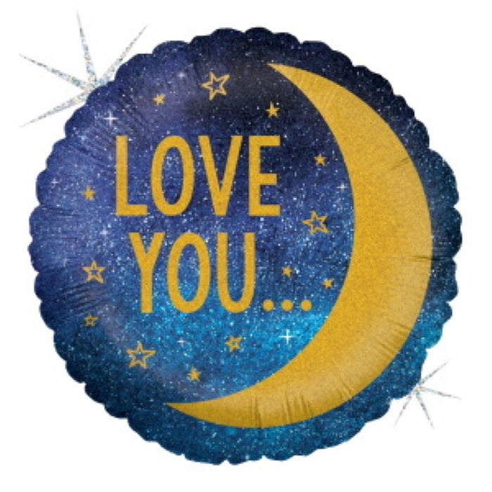 Whether you're celebrating a birthday, anniversary, or just want to show someone how much you care, the Moon & Back Love You 18" Rnd Holo Pkg is the perfect choice. Order now and make their day!