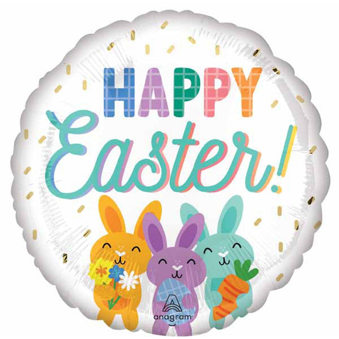 17" Happy Easter Cute Bunnies Foil Balloon (5/Pk)