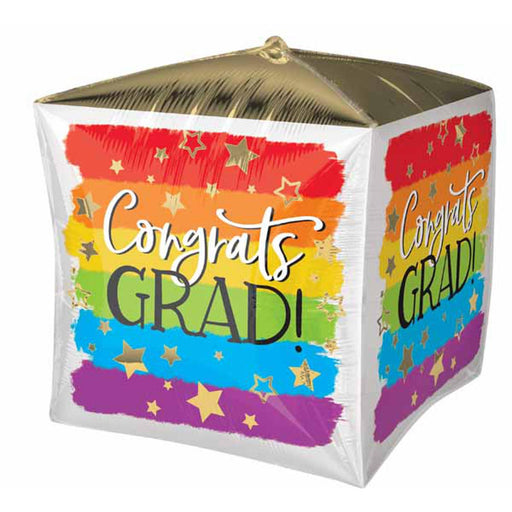 Celebrate your graduation with a burst of color using our 15" Painted Rainbow Grad Ultrashape Cubez Foil Balloon. This multicolored balloon...