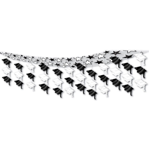 Elevate your graduation decor with our striking Grad Caps Ceiling Hanger in classic black and white. Transform your space with these versatile hang...