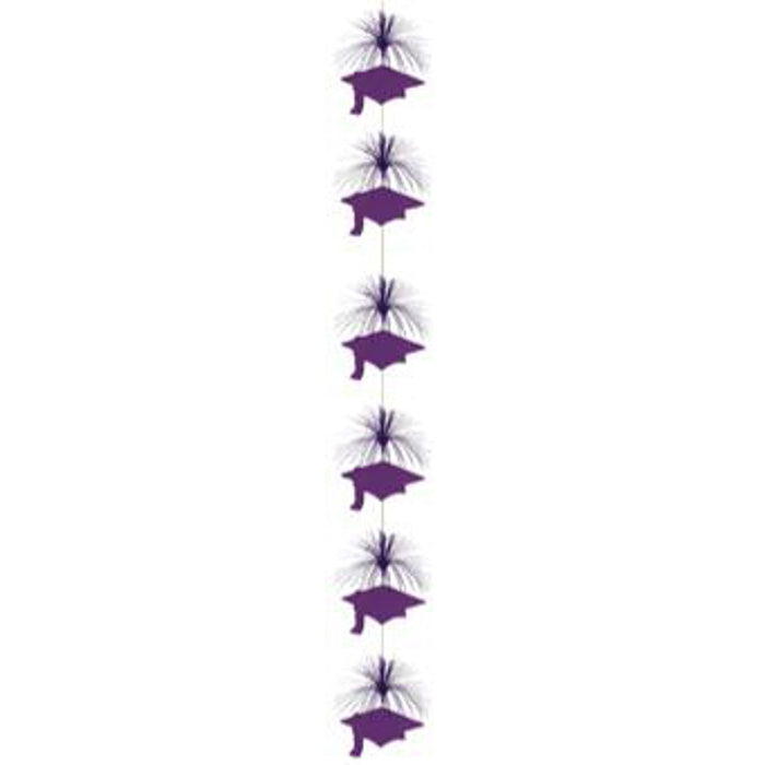 Elevate your graduation party decor with our Purple Grad Cap Firework Stringer, a 7-foot-long stringer that combines the elegance of purple with the celebratory spirit of graduation. This versatile decoration is adorned with purple graduation caps and firework accents, making it the perfect choice to create a festive atmosphere. Here are the key features of this eye-catching decoration: