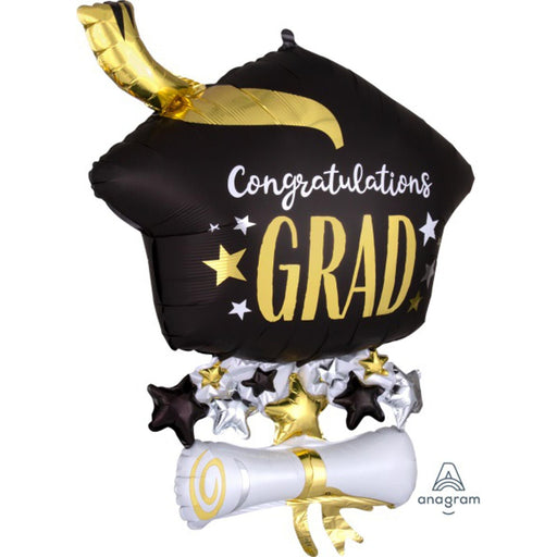 Elevate your graduation celebration with our impressive 31" SuperShape Black Grad Cap Foil Balloon, featuring a bold black color and a grand cap de...