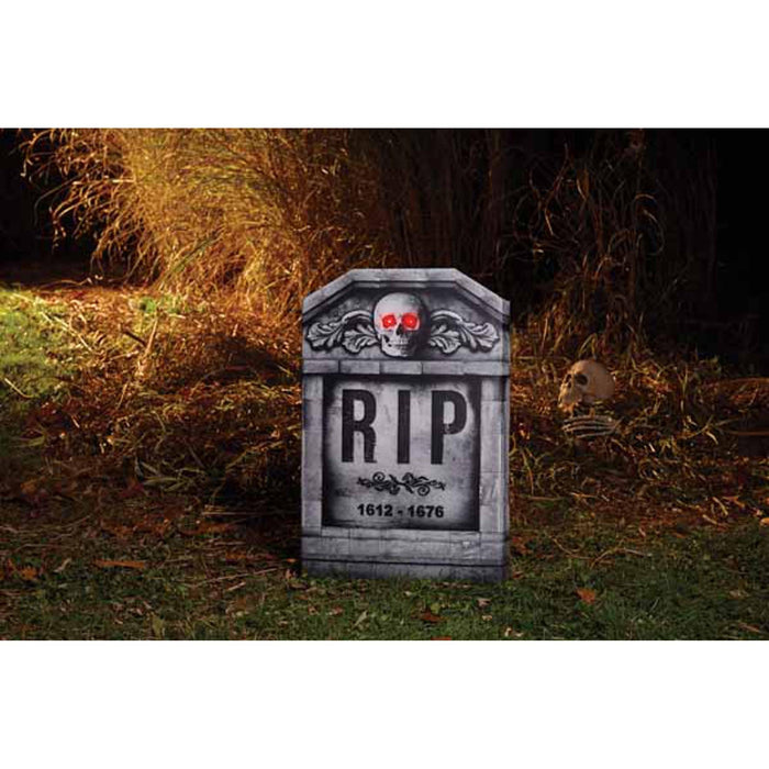 22" Skull Tombstone Lite Up Photoreal - Spooky Halloween Decoration