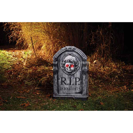 22" Skull Tombstone Lite Up Photoreal - Spooky Halloween Decoration