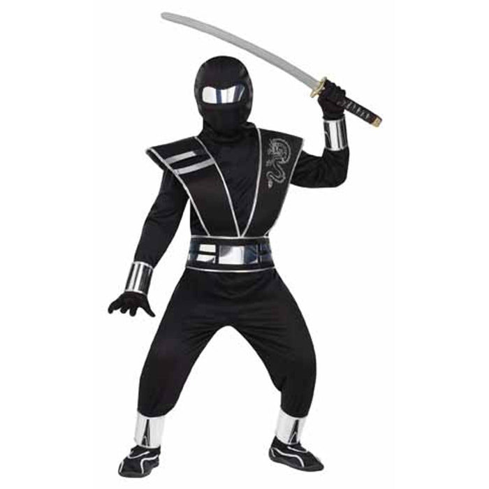 Silver Mirror Ninja Costume For Boys (12-14) - Complete Set