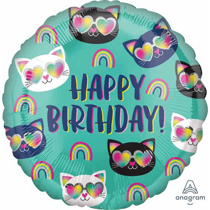 Cool Kitty Rainbow Bash: 18" Happy Birthday Foil Balloon (5/Pk)