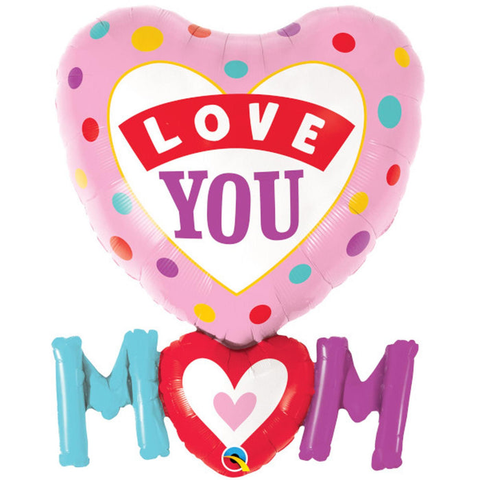 Show your love and appreciation for your mom with this Love You Mom (Heart) Dots 33" Shape Pkg.