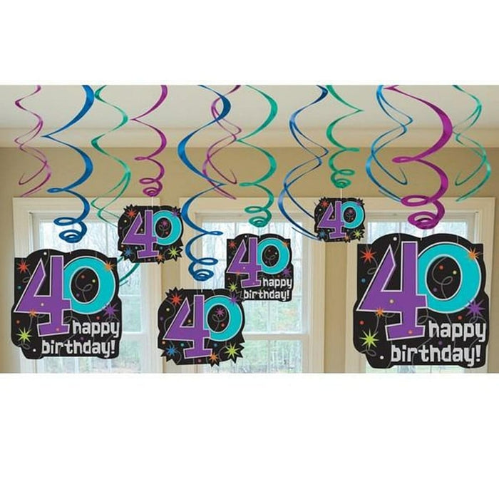 Enhance your 40th birthday celebration with our Swirl Decor Pack! This pack features an assortment of eye-catching swirl decorations, perfect for adding festive charm to your party venue. With their easy-to-hang design, they bring excitement and flair to your milestone celebration.